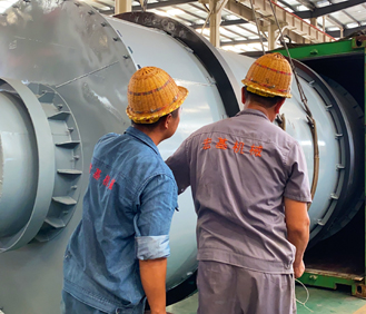 我公司生產(chǎn)的固、危廢回轉(zhuǎn)窯日處理工業(yè)廢棄物規(guī)格型號(hào)根據(jù)有十一個(gè)產(chǎn)品,筒體直徑X長度在?2.2×9m-?4.5×16m之間,轉(zhuǎn)速0.05-2r/min,配套主電機(jī)功率18.5KW-55KW,煅燒溫度850-1200度,能實(shí)現(xiàn)20-100t/d固、危廢無害化、減量化、資源化焚燒。